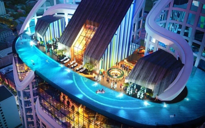 Sky Blue kết hợp hồ bơi vô cực. Phòng tập Gym kết hợp hồ bơi được trang bị đầy đủ thiết bị và hoàn toàn miễn phí. East Garden, chuyên phục vụ đồ ăn, đồ uống.