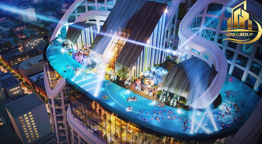 Hồ bơi, phòng gym, khu vui chơi, nhà hàng cao cấp.