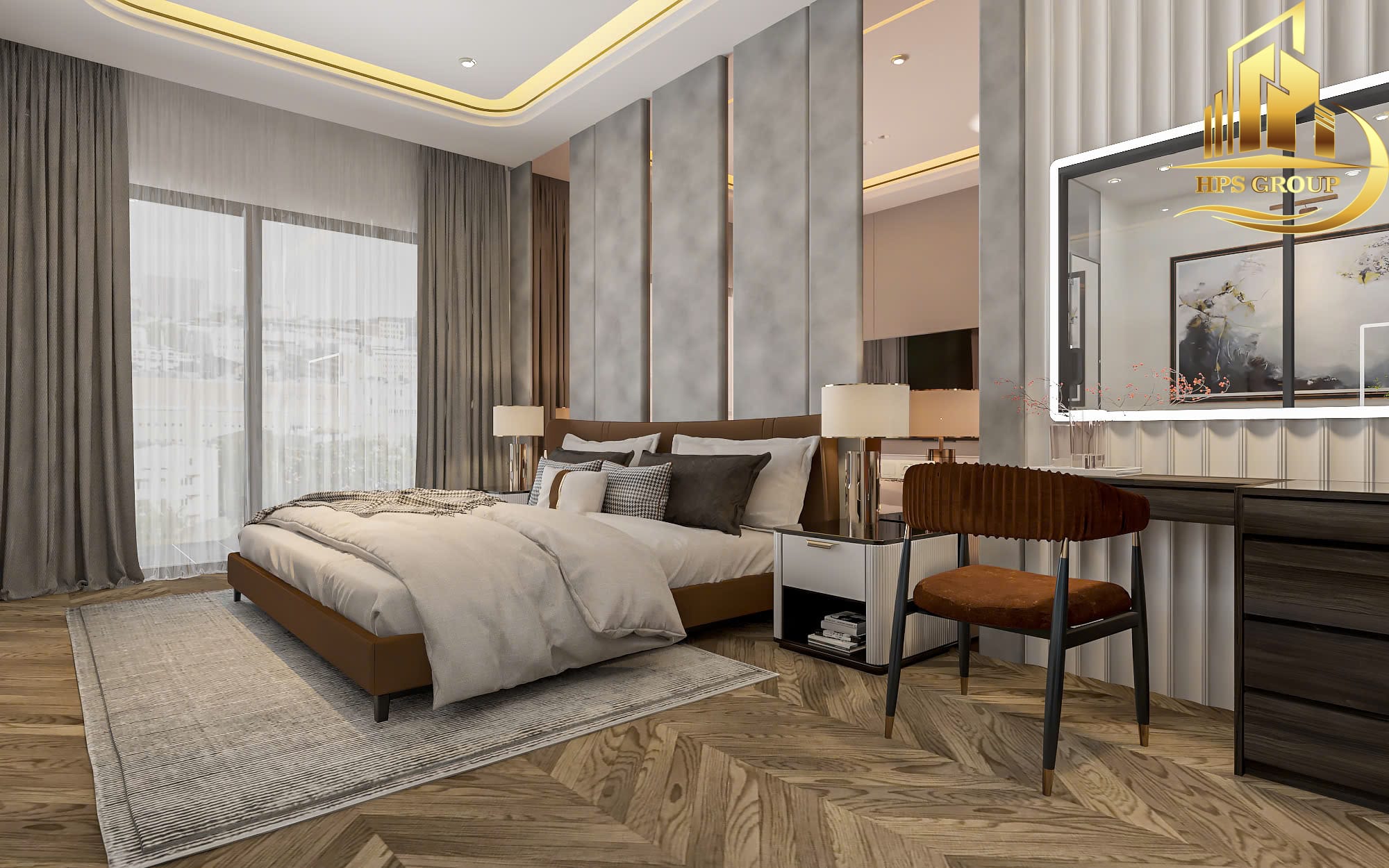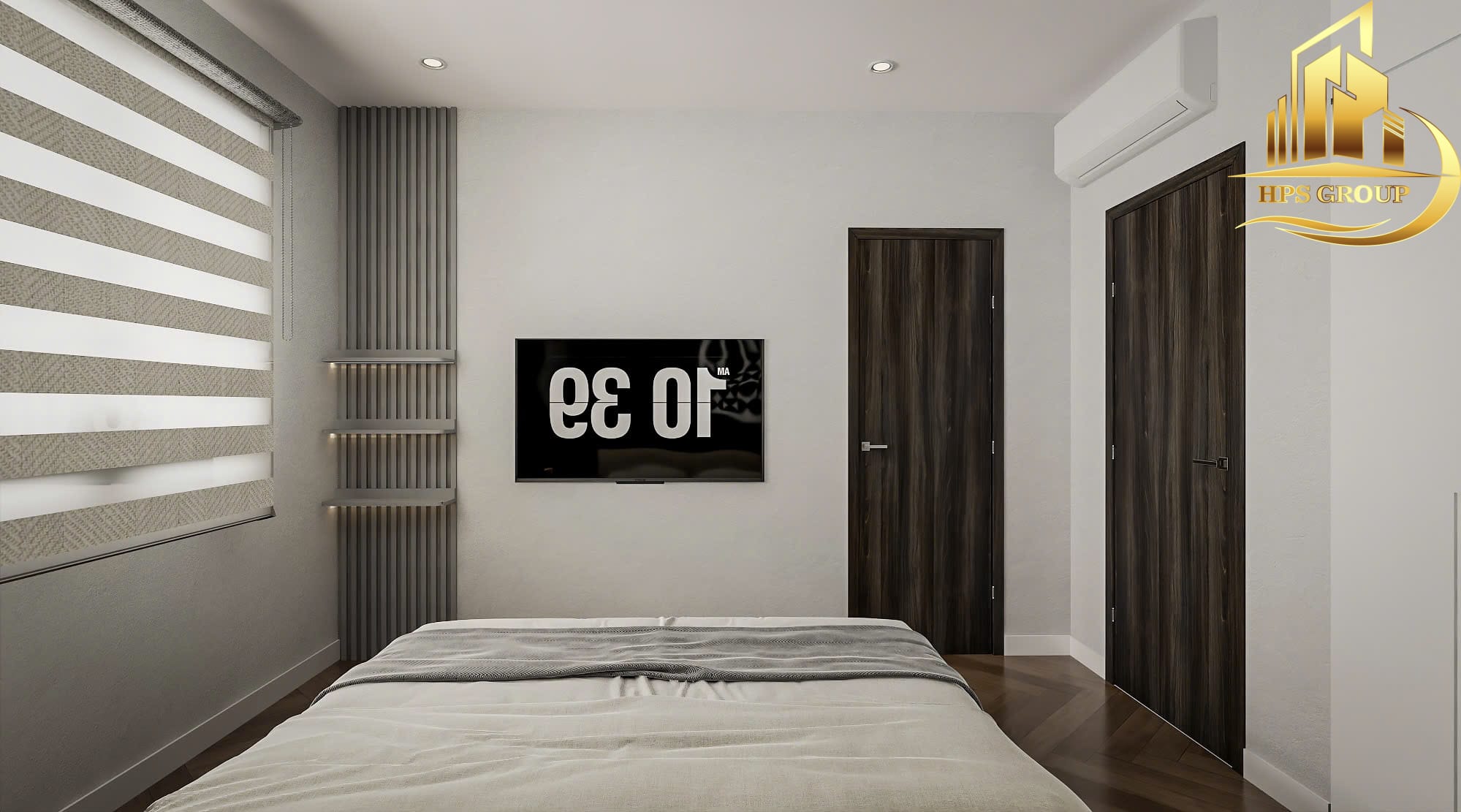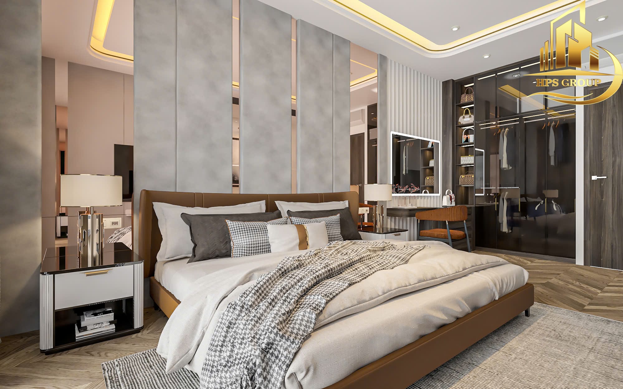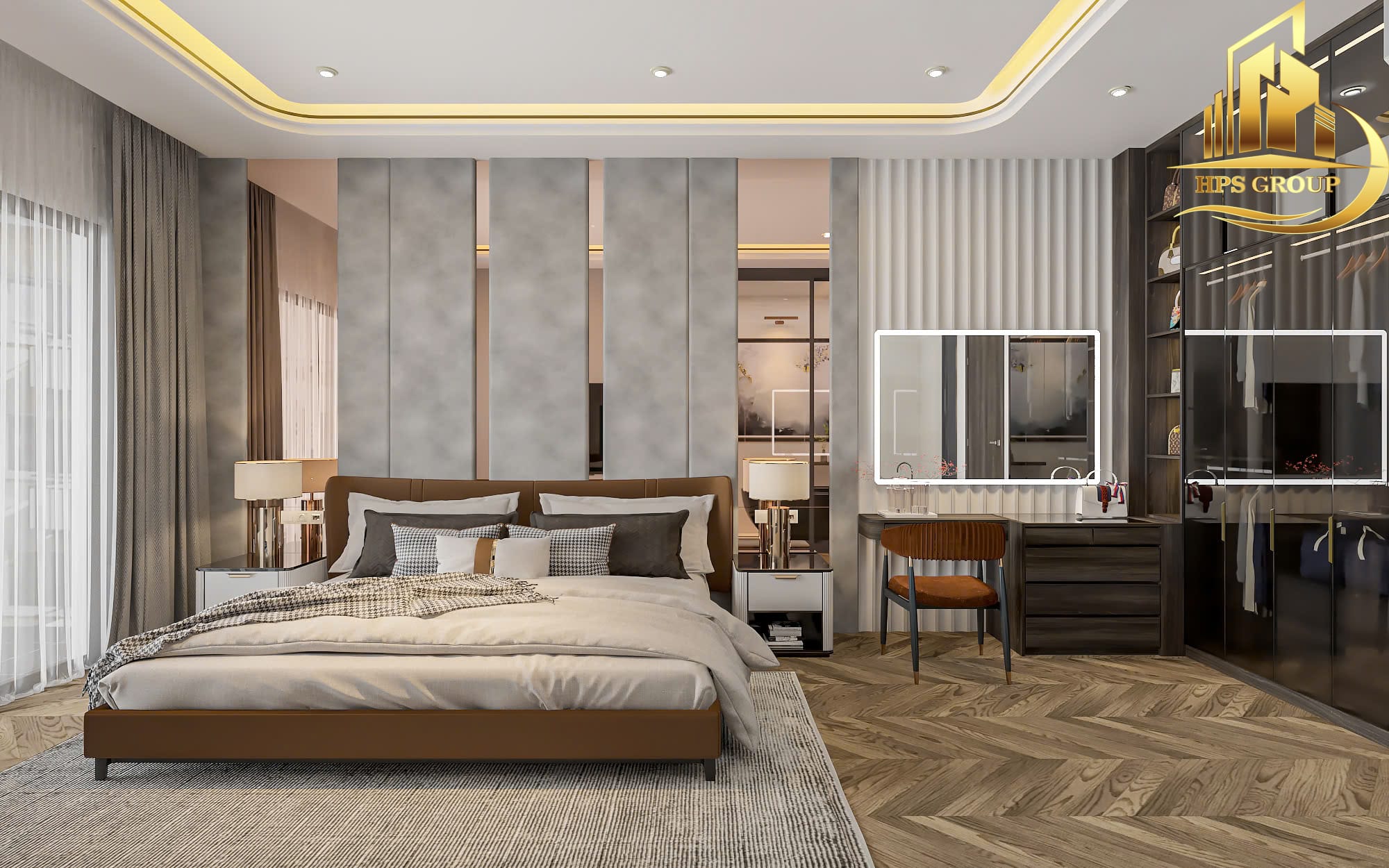 • Phòng ngủ: Thiết kế hướng đến sự thoải mái, thư giãn với nội thất gỗ ấm áp, tủ âm tường tối ưu diện tích.